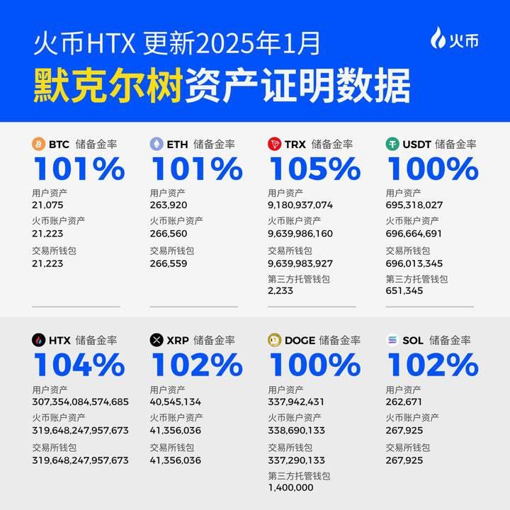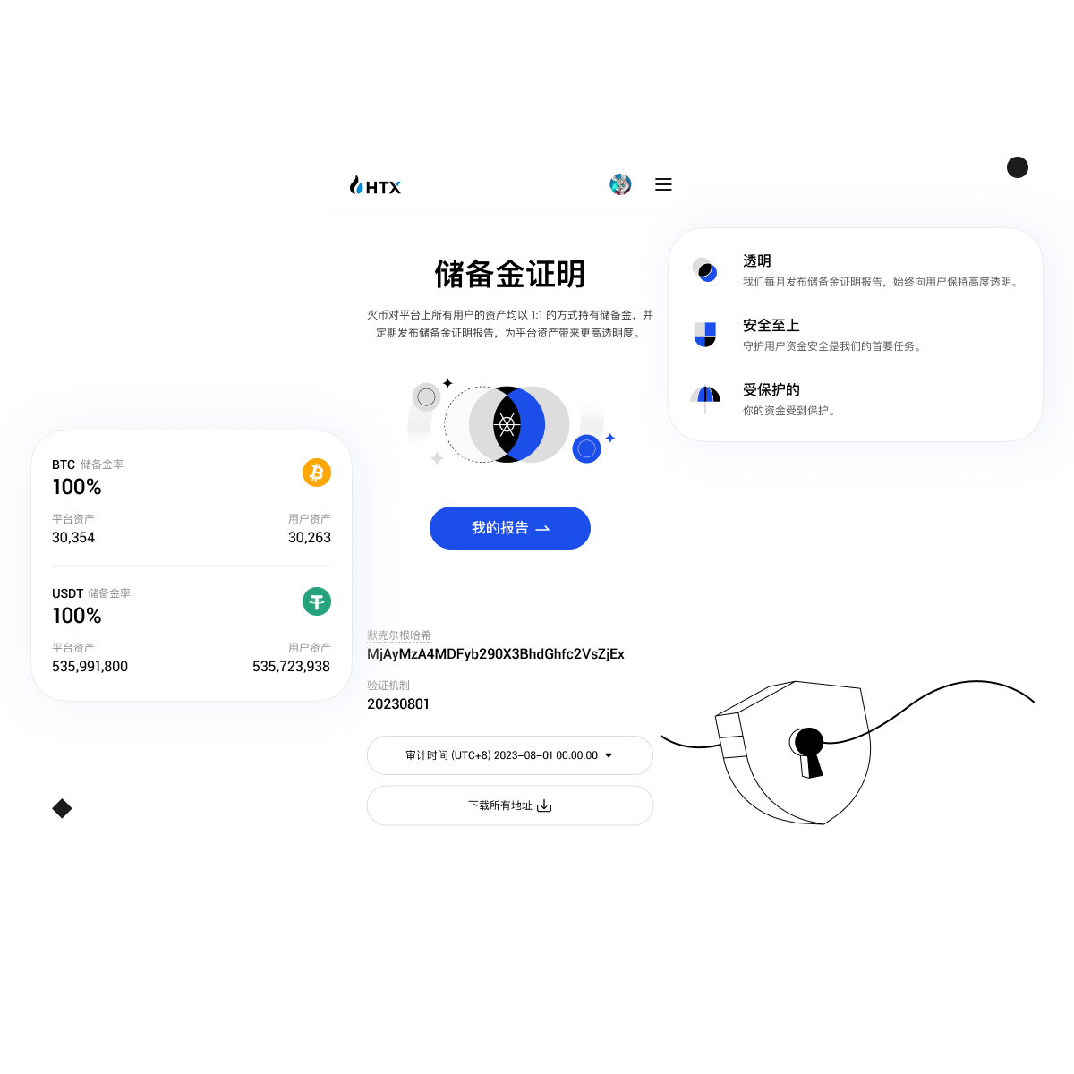 火币对平台上所有用户的资产均以 1:1 的方式持有储备金,并定期发布储备金证明报告,为平台资产带来更高透明度。
